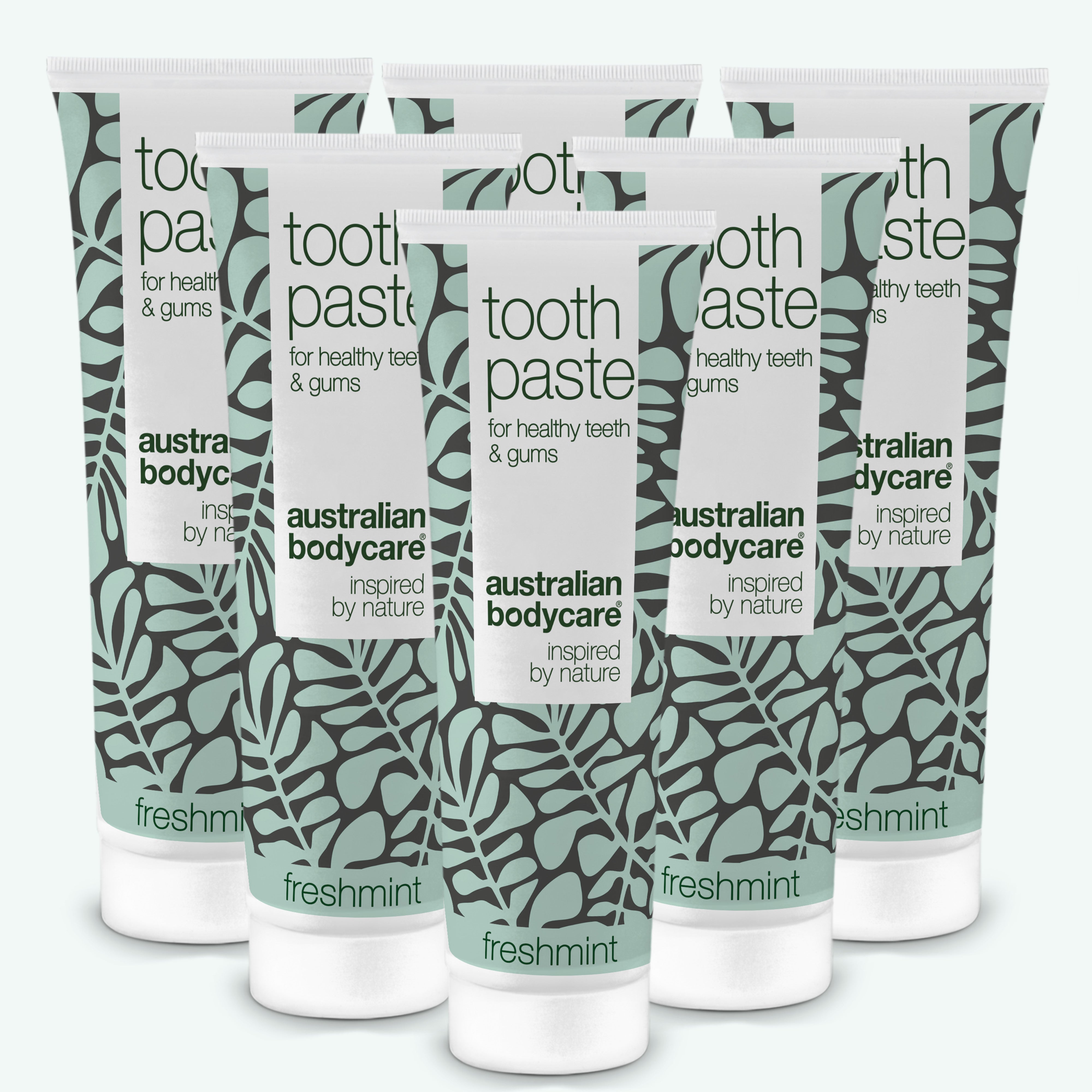 Nous vous recommandons de vous brosser les dents matin et soir avec le dentifrice d'Australian Bodycare.
