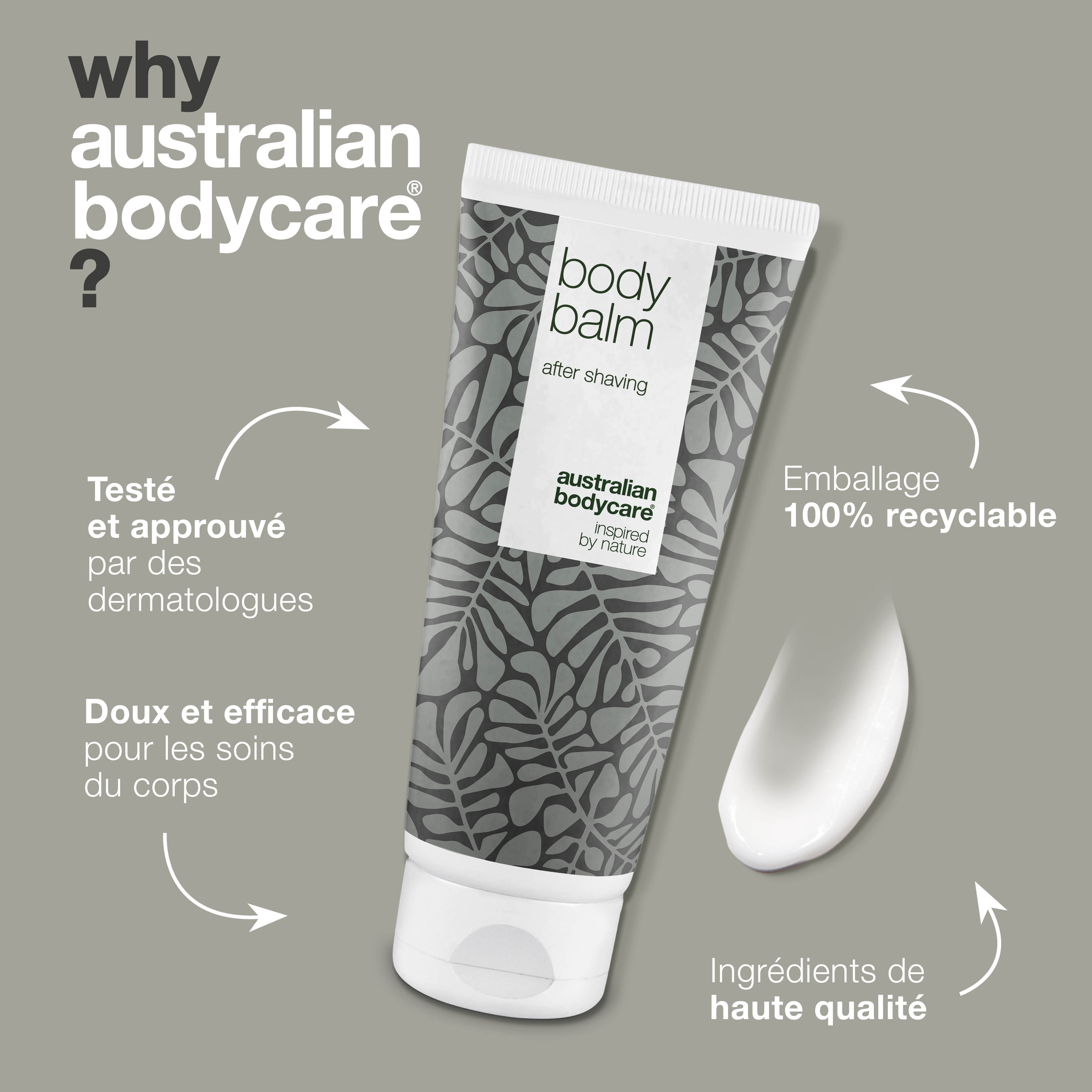 Body Balm peut facilement être combiné avec d'autres produits Australian Bodycare pour assurer un soin optimal de la peau et éviter les poils incarnés et les brûlures rouges du rasoir après l'épilation.